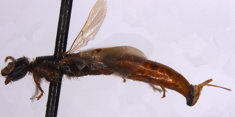 Questo carattere, unito a quello della nervulazione delle ali anteriori assai ridotta, mi fanno convincere che si tratti invece di un Bethylidae (Hymenoptera, Chrysidoidea).