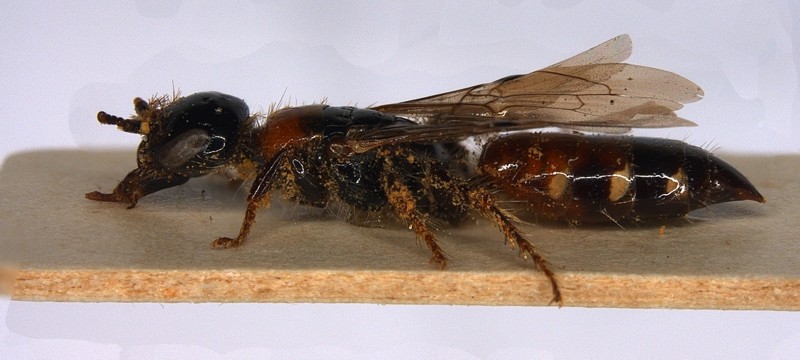 Se volete vedere la larva che questo Imenottero stava parassitizzando dovete vedervi questa discussione. Il nostro Tifide è lungo 5-6 millimetri (un quinto della larva del Coleottero). Le foto purtroppo non sono bellissime perché non posso più sfruttare il nostro Carlo Cesaroni, vi dirà lui il motivo, spero! Lo spero perché significherebbe che avrà modo di divertirsi ancora insieme a noi (ma non ha problemi di salute eh ;) ).