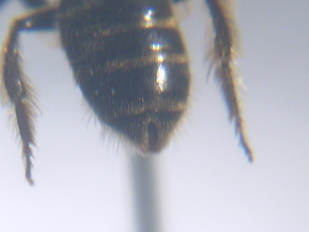 Le bande di peli chiari sono localizzate all'apice dei tergiti, propenderei per il genere Halictus.