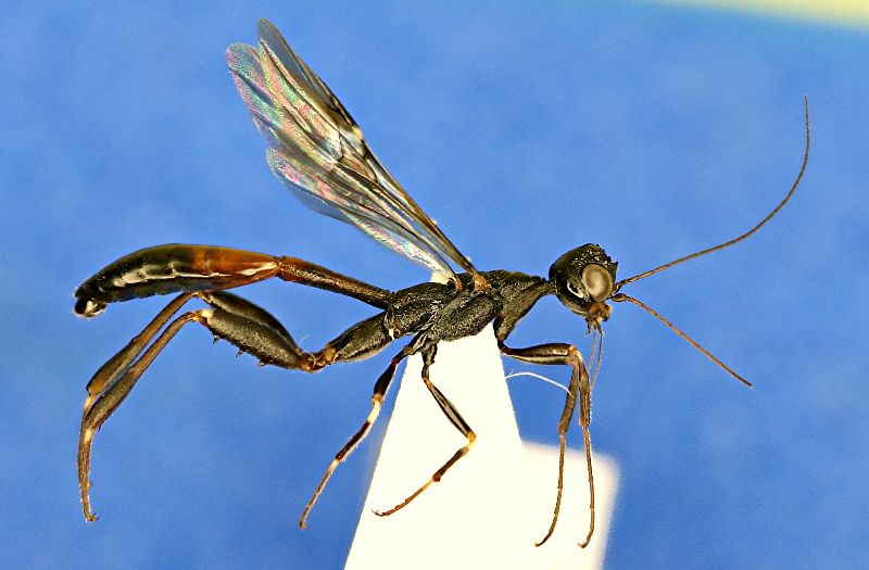 E' un parassita di coleotteri xilofagi, se non ricordo male... Però non voleva deporre perché è un maschio..! La femmina ha un ovopositore lungo quasi come tutto il corpo...