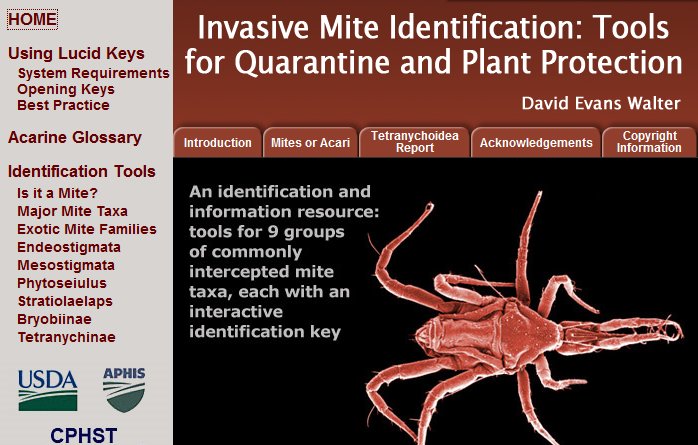 Questo sito contiene una utilissima chiave dicotomica interattiva per l'identificazione dei principali gruppi di acari.