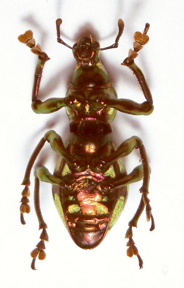 mm 16 rostro compreso. Dovrebbe essere Pachyrhynchus apoensis giacchè il cartellino manca solo del giorno di raccolta, quota (comunque notevole) oltre che del legit, come al solito. E' rimasto sconosciuto a lungo a quanto pare, raccolto già nel 1983. Anche questo come gli altri ex coll. G. Pavanello (Cesena). Magari Enzo Colonnelli che li studia può confermare questo e gli altri.