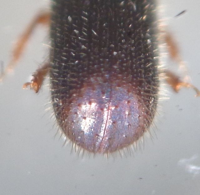 sempre leg. Di Taddeo V. (DTVD); mm 2,2. Inesperto di scolitidi, mi va già bene se ho azzeccato il genere e se dovessi azzardare la specie direi Xyleborus dryographus (Ratzeburg, 1837) per la parte declive delle elitre lucida, ma stante anche il dimorfismo sessuale del genere la lascio come mera ipotesi in attesa di smentite o conferme. Il funicolo antennale direi di 3 antennomeri, l'adiacente alla clava molto trasverso. Vedo che Enzo Gatti sino a settembre scorso è intervenuto su FEI. :)