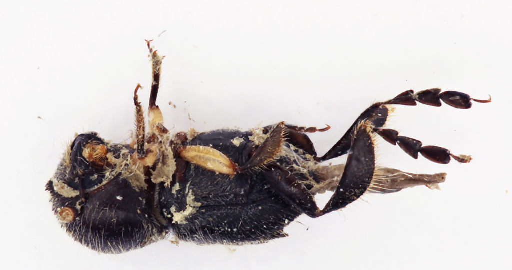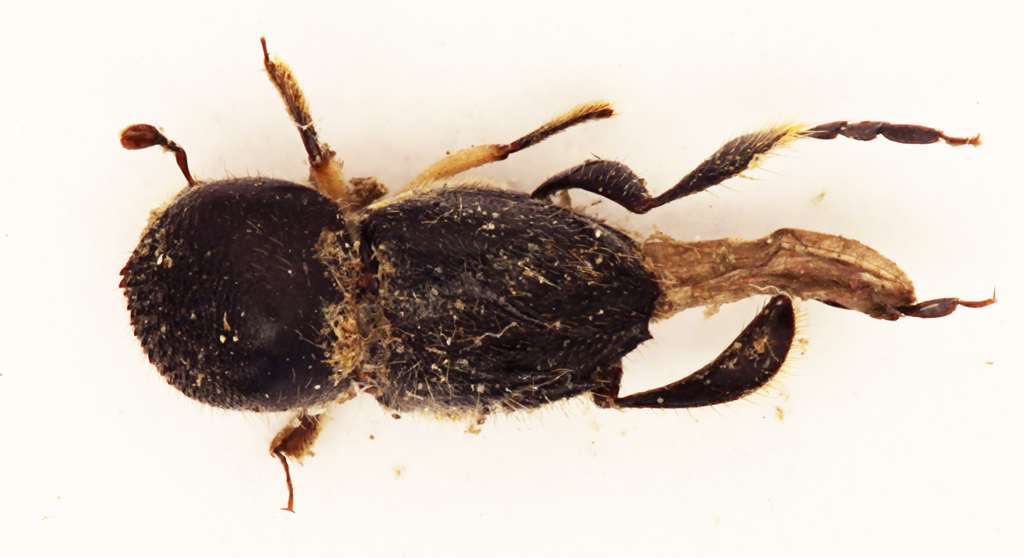 Insieme con tanti attelabidi mi è arrivato dalle Filippine questo singolare scolitide. Caratteristiche le zampe posteriori, lunghissime, compresse e dilatate (soprattutto i tarsi). Notevoli anche le sei spine rivolte all'indietro sulle elitre, che però nelle foto si distinguono male. Chissà se questa bestiolina incuriosisce altri, oltre a me.