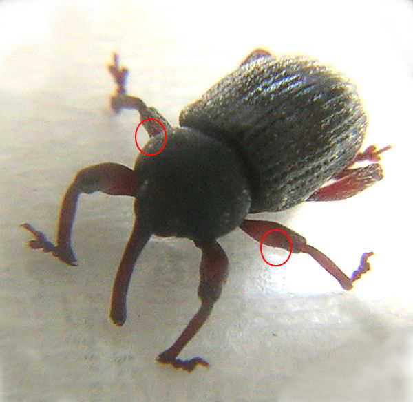 Se tutti e tre questi caratteri corrispondono, e i metafemori hanno qualche "dentino", in virtù anche della colorazione ferruginea dei tarsi e del rostro (e presumo delle antenne), direi che Pachytychius haematocephalus (Gyllenhal, 1836) dovrebbe essere una buona ipotesi.