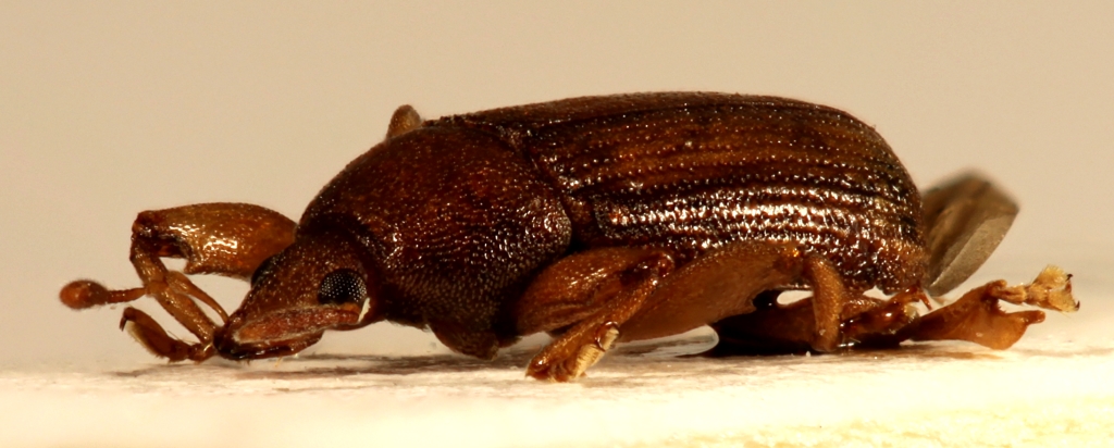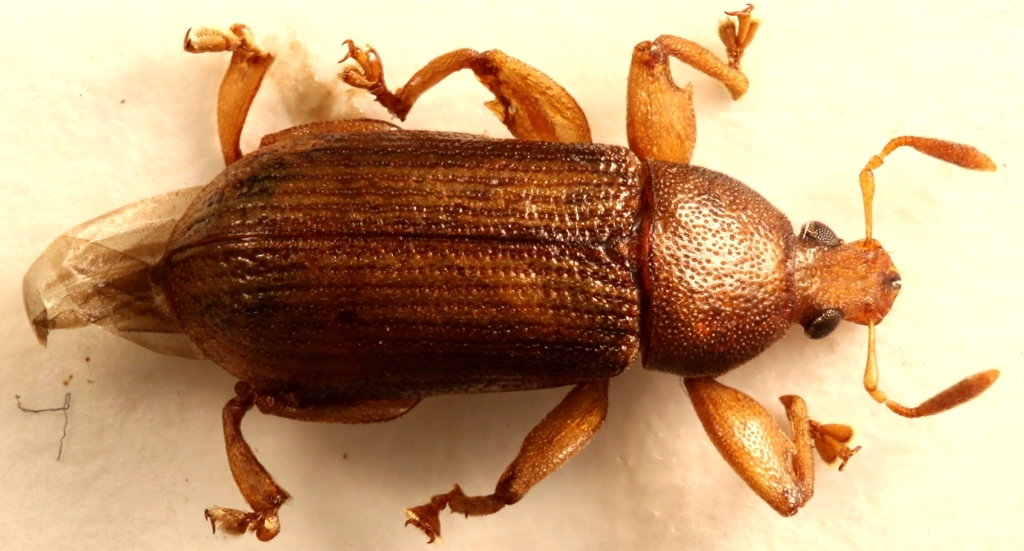 Per quanto riguarda invece la forma in generale un po’ appiattita che mi sembra di osservare nei femori di entrambi sessi, si potrebbe ipotizzare che serva a mantenere le zampe più vicine al corpo e a ridurre così l’ingombro di queste ultime. Questa ipotesi corrobora l’altra di uno stile di vita simile a quello di molti altri coleotteri xilofagi o cambiofagi che devono spostarsi all’interno di un sistema di microgallerie e fessurazioni che essi stessi contribuiscono a creare. E guarda caso (citando Velvet Ant) “Fairmaire chiamò così questo strano Genere di Curculionidi, perchè a prima vista gli ricordava un Uloma (Tenebrionidae)”