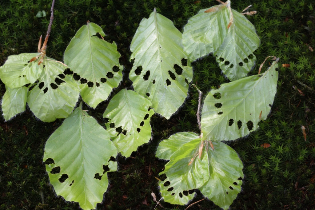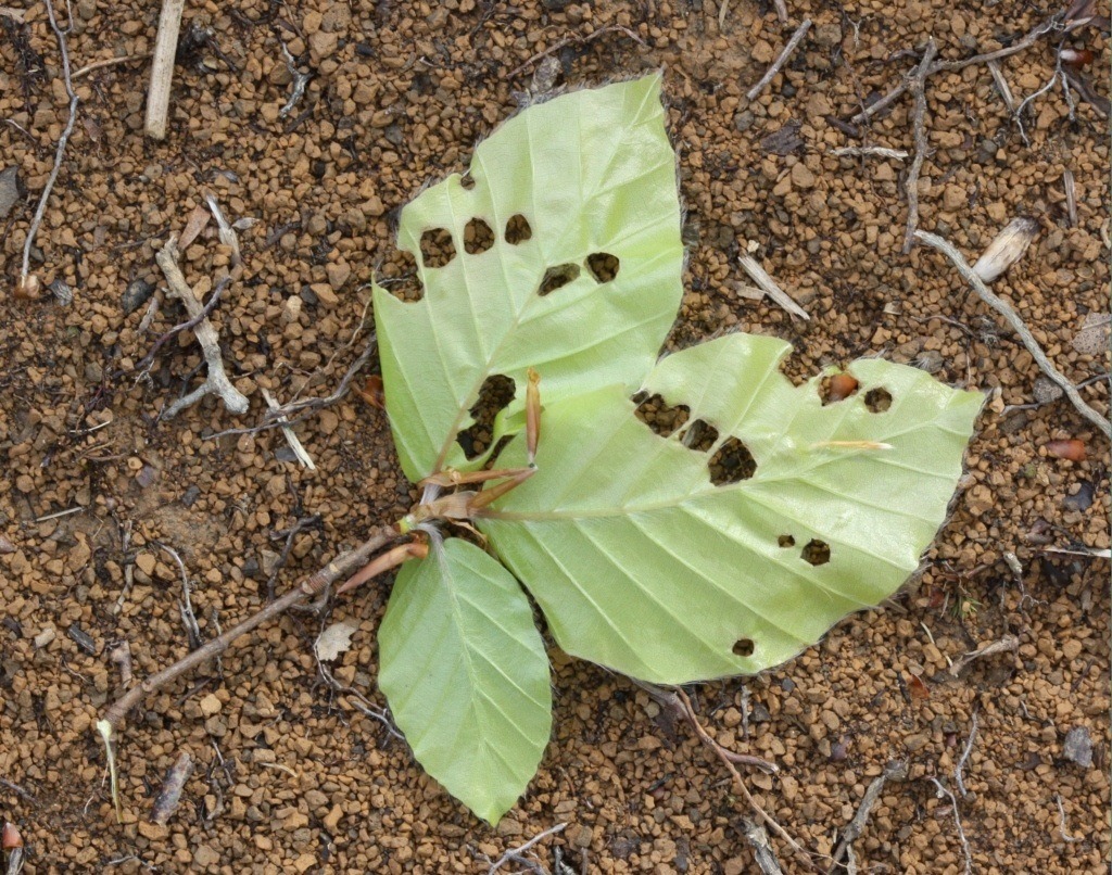 Oggi escursione nei boschi presso Faedo, Lessini Vicentini (VI), 600m. Latifoglie varie con prevalenza, nonostante la quota bassa, di faggio. Ovviamente cercavo attelabidi, ed ho osservato diversi Deporaus betulae, rigorosamente su carpino bianco. Ho cominciato ad osservare anche le foglie di faggio, e ne ho trovate parecchie mangiate in modo caratteristico: