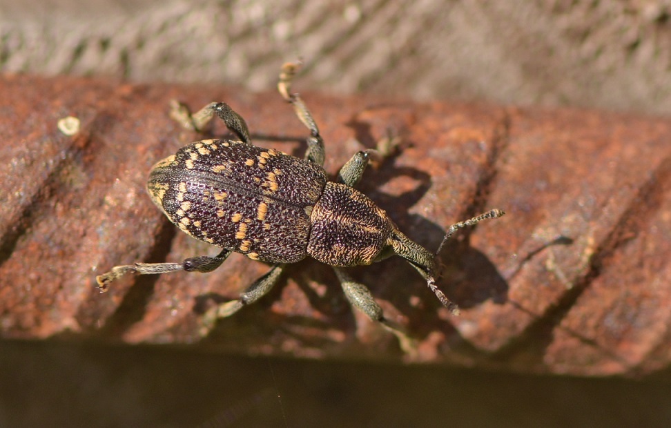 a fianco della catasta di tronchi tagliati da poco, dove ho rinvenuto i Monochamus sartor, c'è una catasta di tronchi ammassati da più di un'anno, alcuni (tronchi) sono bloccati da clamere in ferro, su una di queste c'era questo Curculionide, è possibile identificarlo?