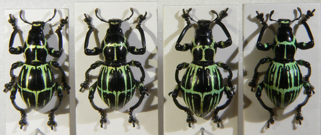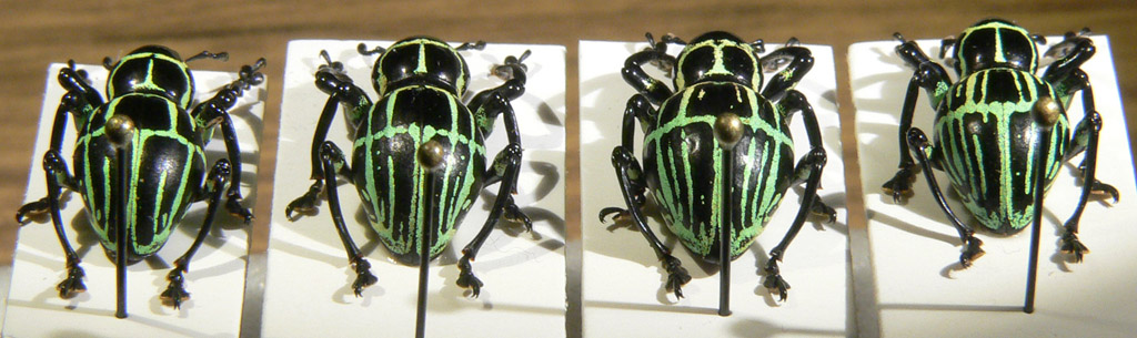 approfondisco altra discussione su Pachyrhynchus recentemente descritti: questa è la serie di phalerathus tutti provenienti dalla stessa località Nord Luzon, Quirino (racc. locale, se corretta) che mostra una gamma di variazioni fino alla specie elenae. estraendo i maschi non si notano differenze di alcun genere!