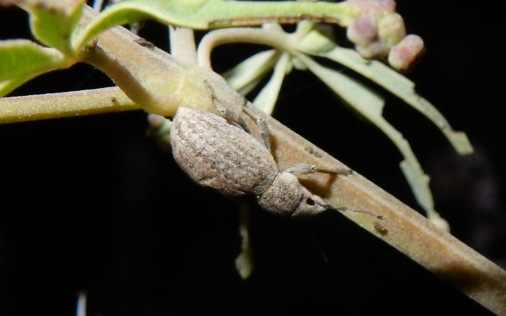 Girovagando di notte su un retrospiaggia di Rodi (o su ciò che ne restava fra un mucchio di immondizie e l'altro) ho trovato questi curculionidi dall'aspetto piuttosto caratteristico. Stavano su un cespuglio di Vitex.