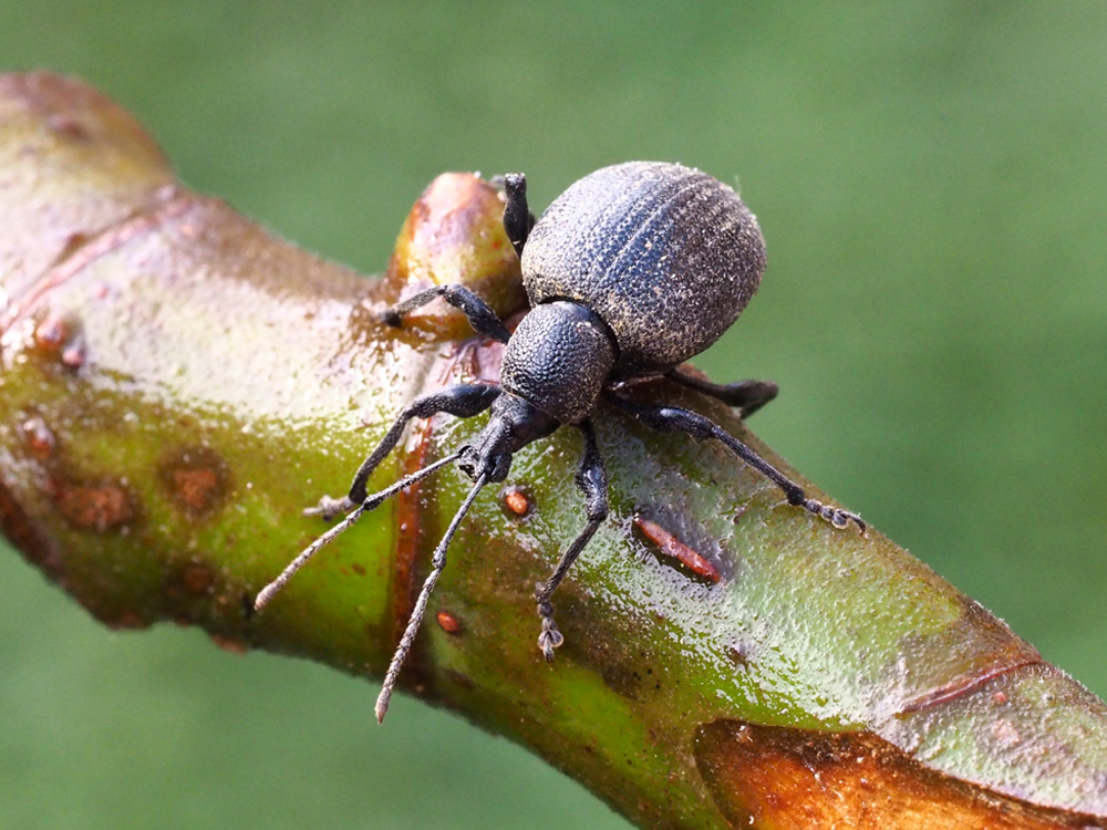 Sto cercando di verificare la determinazione dei pochi curculionidi che ho fotografato. Quello che invio oggi lo incontro frequentemente anche nel giardinetto di casa. Ero convinta che si trattasse di Otiorhynchus sulcatus, nome che ho attribuito a quasi tutti i curculionidi che ho fotografato. Per fortuna ho avuto l’ accortezza di misurarlo. E’ lungo quasi 15 mm. Mi pare che O. sulcatus sia circa 10 mm. So che è un genere estremamente complicato (ho avuto difficoltà a reperire informazioni), ma mi pare, sia dalla scanalatura longitudinale della superficie delle elitre, sia dalla forma dell’addome, sia dalla fossetta all’apice del rostro che possa trattarsi della specie sopraindicata.