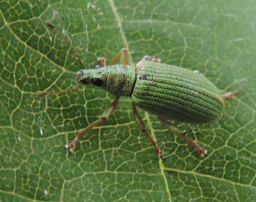 Fotografato anche questo ai margini di in una zona coltivata presso Settimo Torinese, . A pochissima distanza dal precedente, sullo stesso filare, ma su una pianta diversa, in questo caso un Rubus. Era lì per caso o è un’altra specie di Polydrusus?