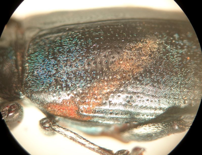 Questo è un esemplare molto simile a questo viewtopic.php?f=11&t=97750 e catturato il giorno dopo al bellissimo Satara camp (mai pagato così poco un bungalow tutto efficientemente attrezzato, quasi di lusso!). Stante la moltitudine di specie nel genere, vorrei conferma; qui la banda rossa era scolorita alla cattura ed è rimasta uguale dopo immersione in acetone e forse è solo vecchiezza dell'esemplare; vi è poi una diffusa colorazione azzurra alla base elitrale. mm 16 rostro escluso.