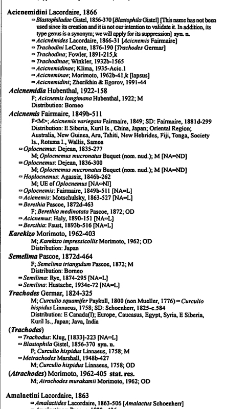 Ciao, secondo le chiavi di Legalov per i Molytinae gli Acicnemidini hanno femori dentati,quindi questo non dovrebbe essere un Acicnemidino :hi: