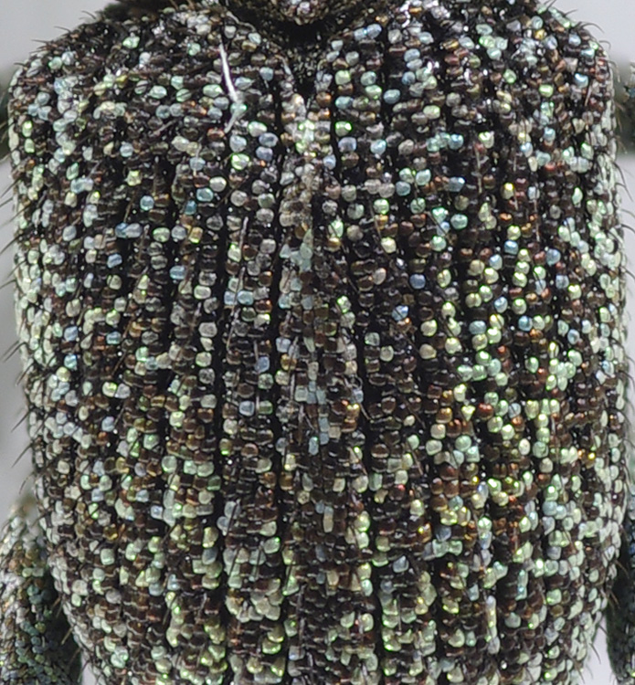 Questo è un particolare delle elitre .... sembrano ricoperte di "perline" colorate....