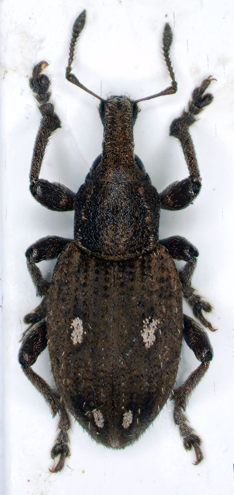 Un esemplare, assolutamente fresco, presenta le elitre coperte di squame nere, senza alcun disegno bianco; la base soltanto è un poco soffusa di grigiastro, questo chiamerei ab. nigricans m.