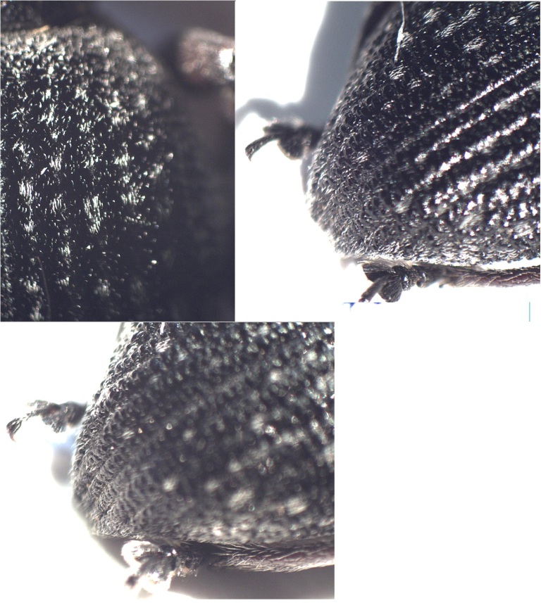 Le elitre sono puntinate di piccoli addensamenti di peluria grigia
