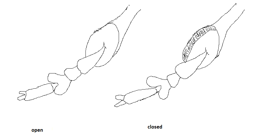 In the subgenus Paracryphiphorus, this area shows at the exterior side, a smooth elongated protrusion, which appears to limit somewhat the freedom of the tarsal movement.