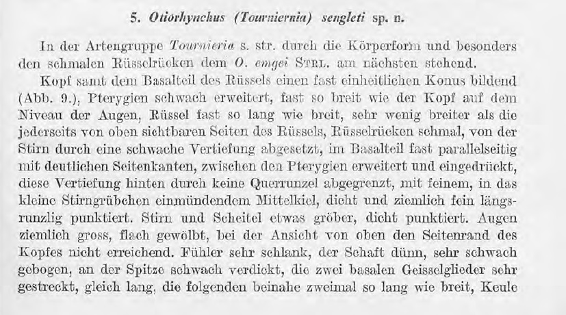 Quelli che tu hai citato, sono confrontabili con le immagini del sito Curci.de, ma direi che nessuna si avvicina "troppo" al tuo esemplare. Direi inoltre di poter escludere O. (T.) sengleti Smreczynski, 1977, di cui inserisco di seguito la descrizione originale e l' habitus. Capisco pochissimo il tedesco, ma morfologicamente, direi che siamo lontani.