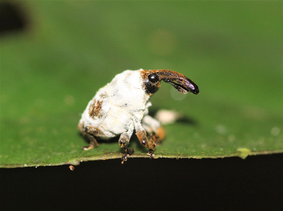 A prima vista ho pensato ad un Baridinae,poi ho notato la somiglianza con i Mecysolobini un po per la postura ma specialmente per la sproporzione tra arti posteriori e anteriori,per l'aspettto generale e la folta pubescenza bianca (ammesso che non sia un fungo) presente anche in altri Mecysolobini africani ma anche asiatici.