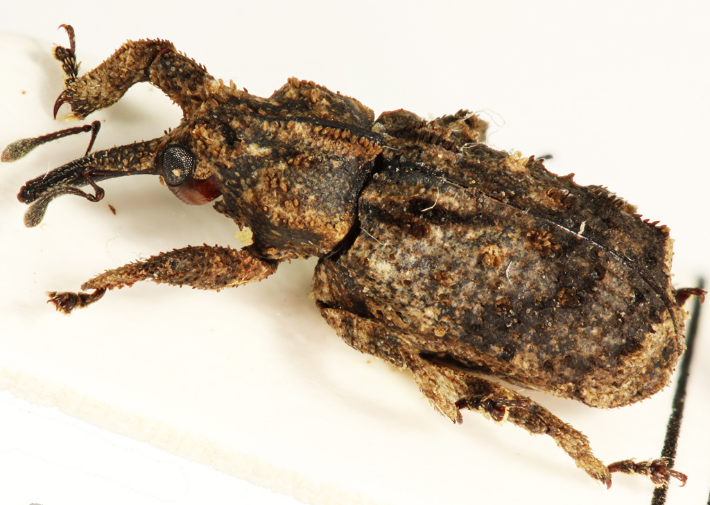 Stamattina casualmente ho trovato, in una tasca segreta ( :lol: ) della borsa che avevo in Gabon, una provetta con dieci curculionidi raccolti da Jean-Philippe Roguet a Mondah. Dopo tre mesi avvolti in carta assorbente con due gocce di etere, esemplari facilissimi da preparare. Ben tre appartengono a questa specie, purtroppo ancora senza nome.
