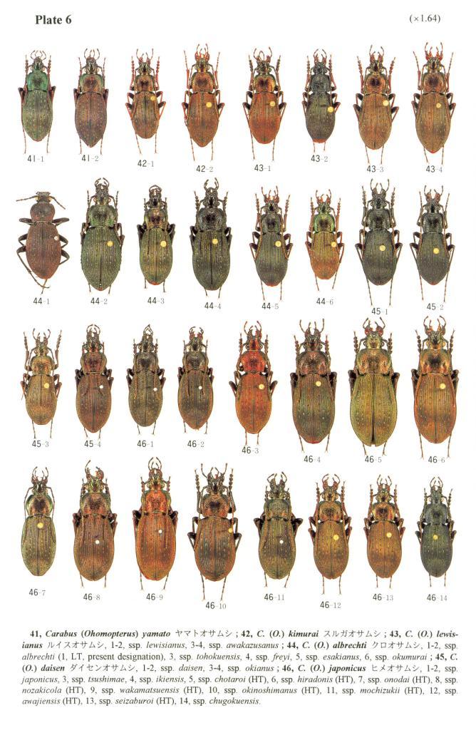 Potrebbe effettivamente essere C.(Ohomopterus) insulicola insulicola, tuttavia nella stessa zona si può trovare anche C.(Ohomopterus) esakii esakii Csiki, 1927 e gli ibridi tra le due specie, sarebbe facile venire a capo del problema se fosse un maschio, vista la grossa differenza nella forma del digitulus tra le due specie, ma dato che è una femmina le cose sono più complicate; per quanto riguarda le dimensioni C.(Ohomopterus) esakii esakii va da 22 a 29 mm , mentre C.(Ohomopterus) insulicola insulicola va da 24 a 33 mm, l’esemplare mostrato è di 28 mm quindi rientra nel range di tutti e due. L’unico modo per sapere che cosa sia con una certa sicurezza sarebbe osservare la così detta ”inner plate of ligular apophisis” dei genitali femminili, che nel C.(Ohomopterus) esakii esakii è più tondeggiante rispetto a quella di C.(Ohomopterus) insulicola insulicola. Quindi, per adesso, penso che sarebbe più sicuro almeno mettere un punto interrogativo vicino a C.(Ohomopterus) insulicola insulicola. Un salutone a tutti e in modo particolare a Stefano Dacatra che ho il piacere di conoscere. |