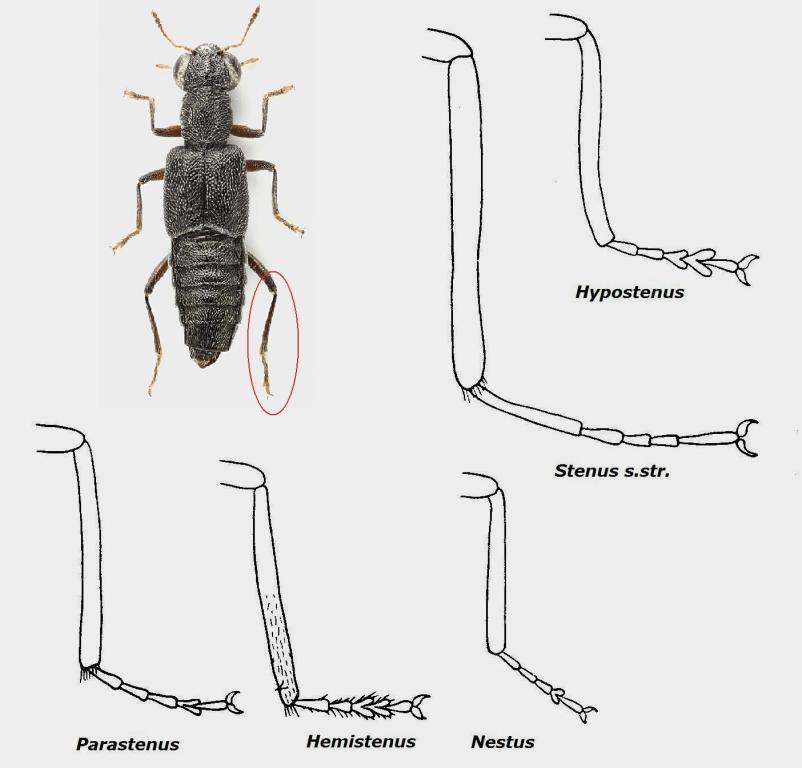 Grazie Jan. Vedo ora che nel genere Stenus in Italia ci sono qualcosa come 150 taxa, tra specie e sottospecie! Per cui, dubito molto che da foto si possa arrivare alla specie. Controllerò i tarsi al microscopio e ti farò sapere (oppure farò una foto del particolare ad ingrandimento massimo).