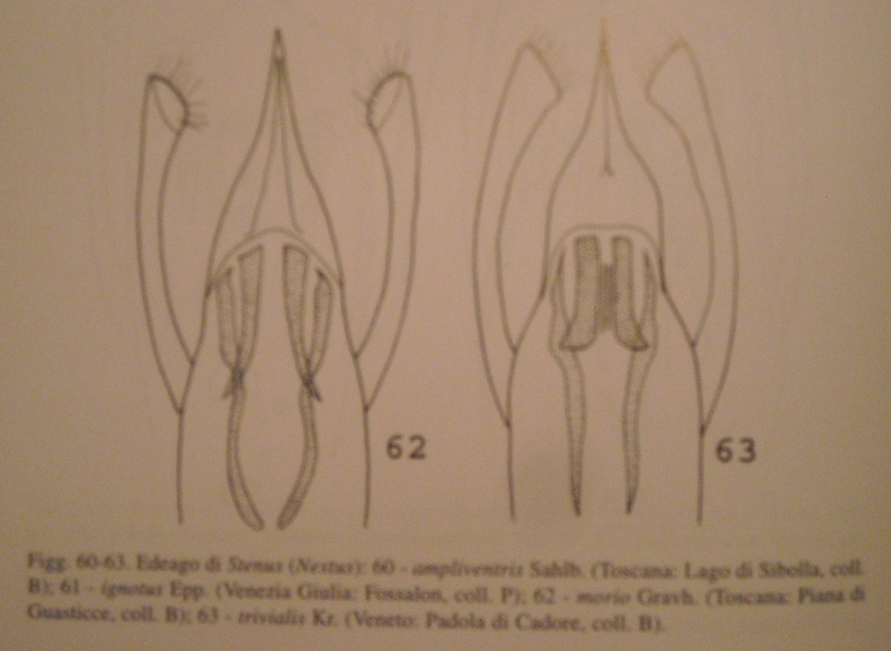 L'edeago è simile a quello di Stenus trivialis e Stenus morio.