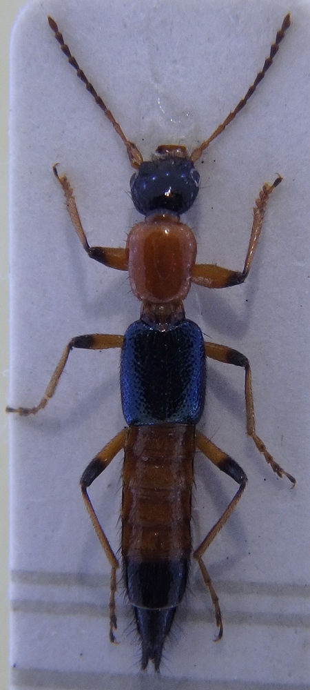 posto una foto come meglio sono riuscito a fare, pur sapendo che i Paederini sono impegnativi per la determinazione...con la "Bestimmungtabelle" dei coleotteri tedeschi e le tavole dicotomiche di P. Visentini arrivo a ipotizzare per esclusione si tratti di Paederus fuscipes Curtis,1840; dimensioni 8,5 mm, ambiente palustre, in numero, alla luce UV.