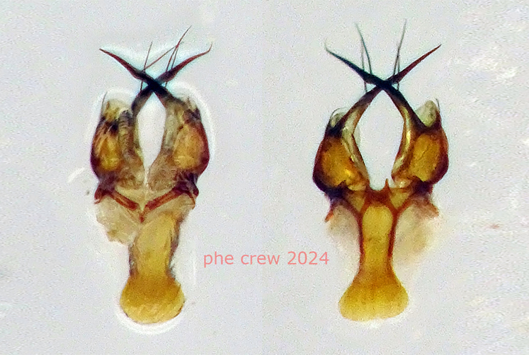 ...grazie Jan ! Dopo lo stupore avuto vedendo la tua risposta da ospite che rincaro anche qua' , sono andato a vedermi delle chiavi ed e' ovviamente la specie da te citata. E' una femmina, alata, tarsi 5,5,5 (se ho contato bene), palpi mascellari a punta....e appendici dello sternite VIII con due peli lunghi caduno e due corti denti alla base. ![]() |