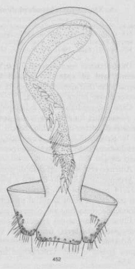 What I find disappointing is that the big sclerite "tooth-shaped" observerd in the upper section of the sketches, appears in my sample as a tight bundle of micro-spines. Or, at least, this is my impression.