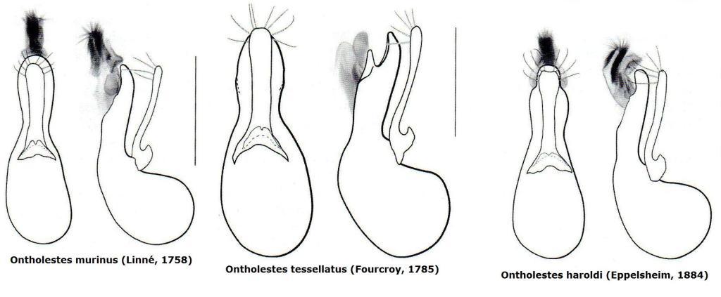Ontholestes murinus (Linnaeus, 1758) - Staphylinidae - immagini O. haroldi, O. marginalis e O. tessellatus