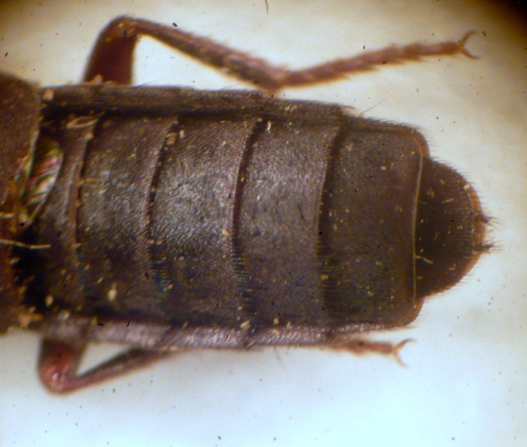Questa "bestia"  presenta un colore bruno nel pronoto,elitre e metameri addominali o almeno la peluria che la ricopre,mentre la testa è nettamente nera. Ho provato a rifotografarla magari scappa fuori qualche particolare per accendere la Ops!! mi son dimenticato di sniffarlo ma dopo 13 anni sarà anche un pò svanito