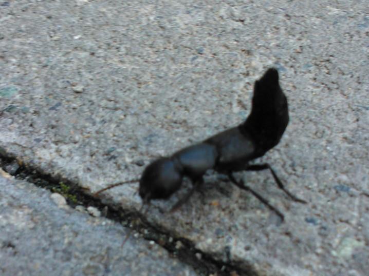 La posizione aggressiva/difensiva col corpo nero inarcato e la testa sollevata gli aveva procurato il nome popolare pittoresco di "cocchiere del diavolo".
