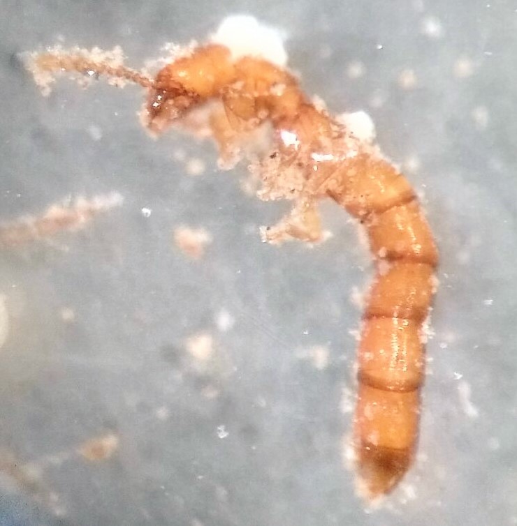A me non sembra Gynotyphlus perpusillus; tra l'altro lo vedo abbastanza scuro di colore. Puoi misurarlo con esattezza? Puoi mostrare una foto dell'apice dell'addome in visione ventrale? Non escludo che si veda l'edeago in trasparenza.