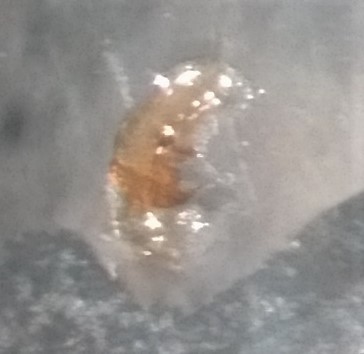 Bravo Marco, quello è proprio l'edeago Ora andrebbe pulito delicatamente con un pennellino dai tessuti connettivi non sclerificati che lo coprono. Forse se lo metti su fondo bianco lo vedi meglio, io lavoro su un cartellino di acetato trasparente appoggiato su un blocchetto di plastazote. Poi si include in una goccia di Euparal o DMHF possibilmente orientato come nei testi, direttamente sul cartellino di carta bianco dove incolli l'insetto o su uno di acetato a parte.