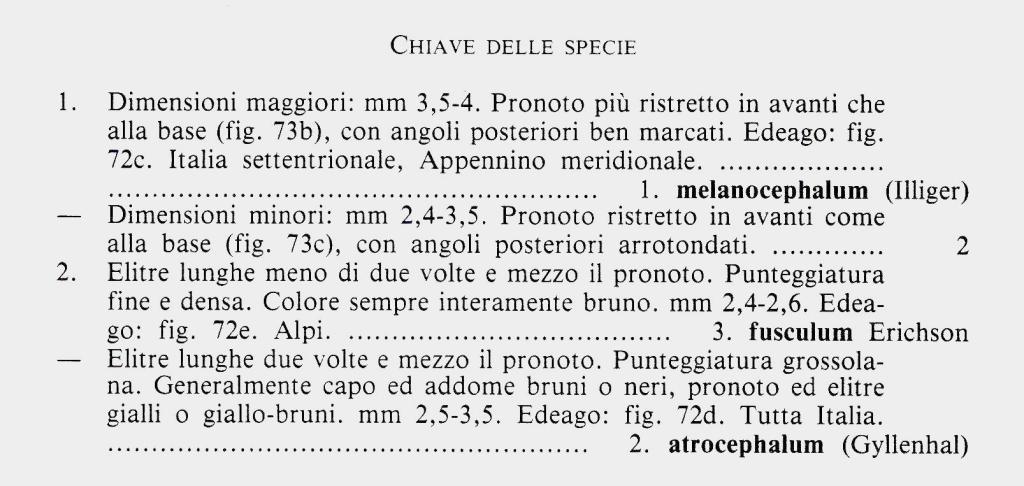 Confrontando le immagini del pronoto in fig. 73 (nella pagina successiva), direi che si tratta di A. atrocephalum atrocephalum. Ciò per gli angoli posteriori (in questo non sono marcati) e per il margine anteriore non concavo. La punteggiatura della testa non è "molto densa" (come citato in A. fusculum).