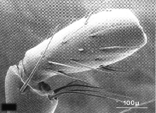 Se le nostre mandibole presentano invece un dente “semplice” all’orlo mediano (foto 5) e l’ultimo segmento dei palpi mascellari presenta alcune setole (foto 6), saremo di fronte a un Tasgius.