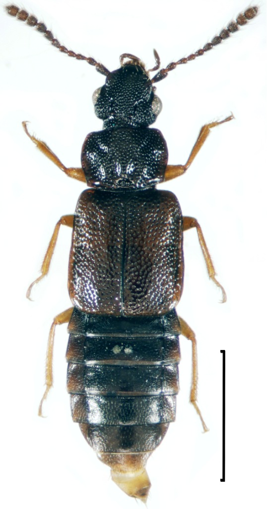 Proseguo con i piccoli stafilinidi raccolti sul colle Monte Netto. Penserei al genere Anotylus Mi ci sono perso sulle poche chiavi che ho: alzo bandiera bianca. Misura circa 2,5 mm (Jan mi odierà per tutto il lavoro che gli sto procurando! ) |
