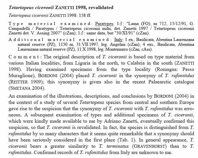 in detail earlier (ASSING 2008), T. ciceroni undoubtedly represents a distinct species
