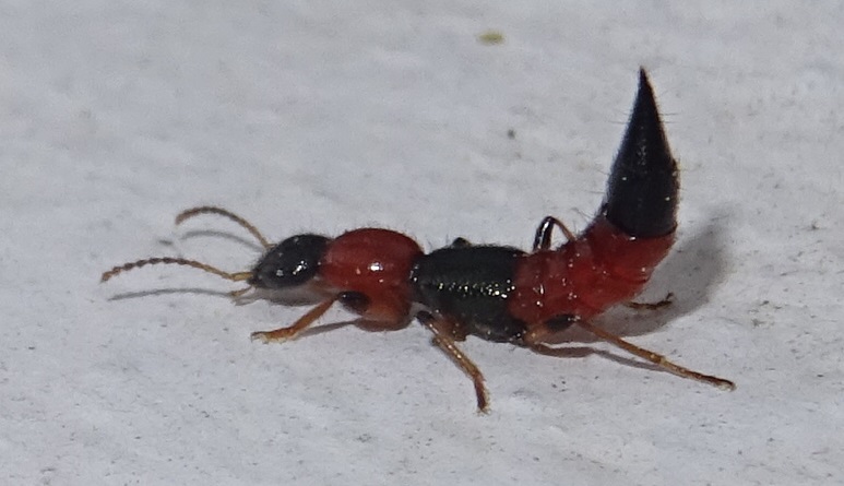 Salve, bestia mai vista, con quell'addome a punta verso l'alto. Confesso che ho provato con Lens, che sembra indicare questa famiglia di Staphylinidae. Pochi mm di lunghezza. Grazie!