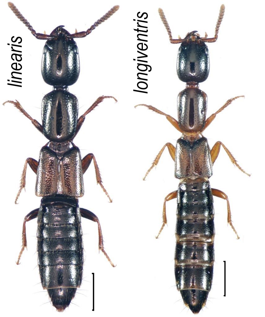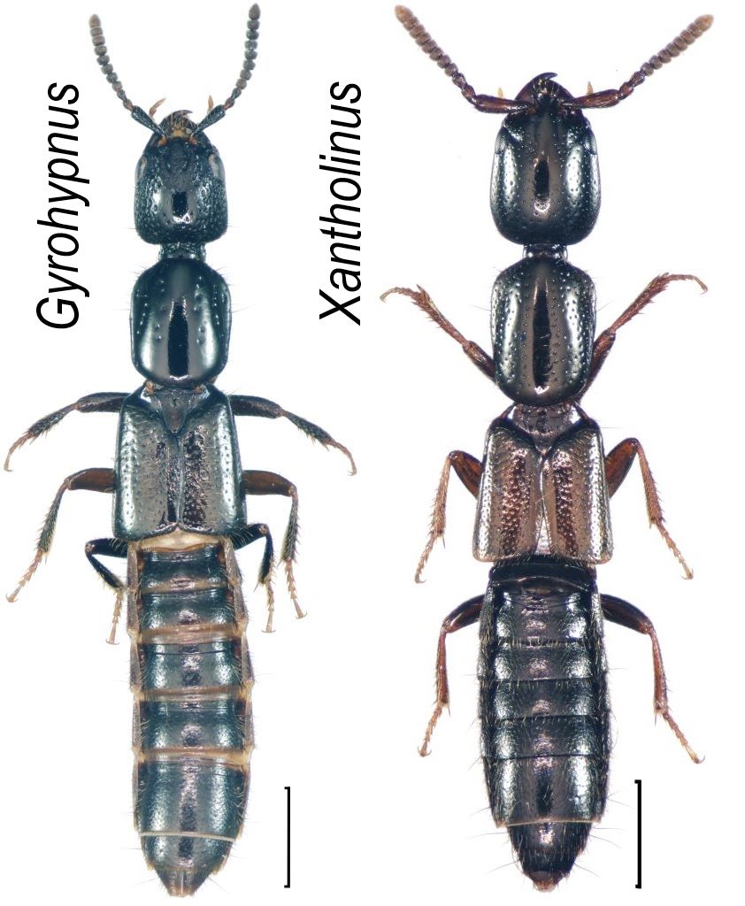la specie più comune Xantholinus linearis (Olivier, 1795), Xantholinus longiventris Heer, 1839