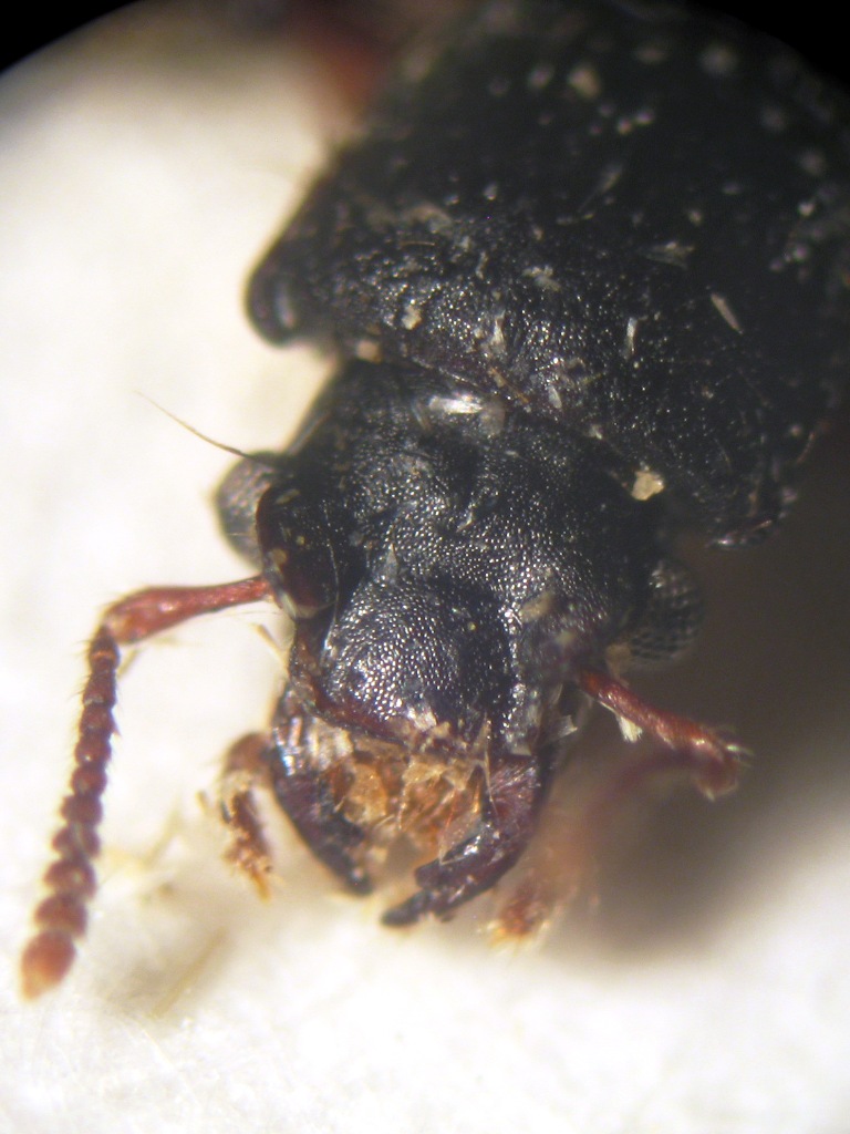 Altro bellissimo Stafilinide, credo Bledius più grande e più cornuto di quelli di ieri. Primo maschio L. = 6 mm circa Secondo maschio con corna ridotte L. = 6 mm Prima femmina L. = 6,5 mm circa Seconda femmina L. = 6,5 mm circa Bledius furcatus?? |