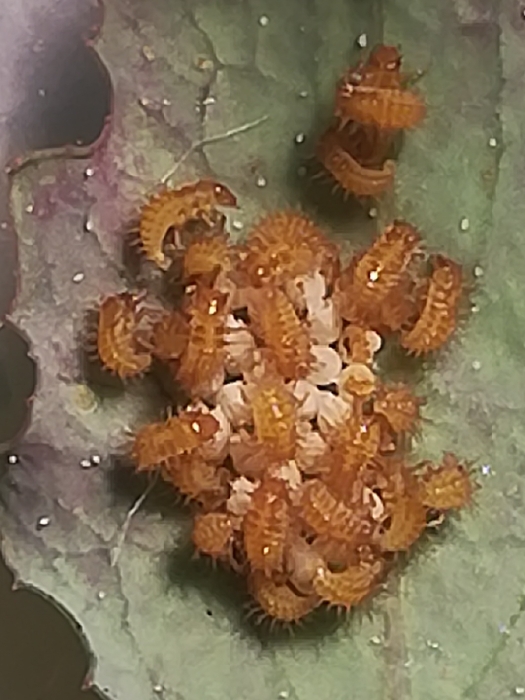 ....devi guardare il primo stadio, prima che facciano la prima muta e diventono piu' scure o addirittura nere. Allo sgranocchiatore del Cocomero asinino non ci avevo pensato !  ... puo' darsi che sia proprio l' Epilachna !.