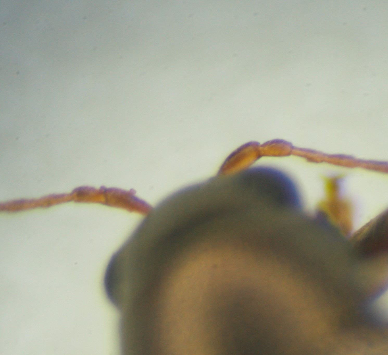 Chaetocnema hortensis-montenegrina complex. If first segment of antennae completely yellow then Ch. hortensis, if partly darkened then Ch. montenegrina.