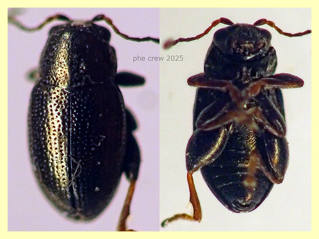 ...si riesce a fare un passo in piu' su queste due Chaetocnema sp. trovate morte in una pozzanghera di zolfo ? Misurano 2 mm. precisi caduna.