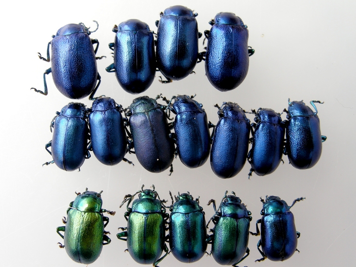 Sinceramente (anche se non ne capisco nulla) quella in basso a SX è tutta verde con il protorace molto diverso dai rimanenti, come per gli esemplari blu, fra di loro ci sono alcuni che hanno diversa punteggiatura sia sul protorace che sulle elitre.