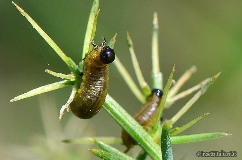 Gli aspargi sotto casa mia ne sono completamente ricoperti, tipo una decina di larve per ogni rametto :shock: ! Mi pare anche che emettano un secreto colloso se toccati.... :dead: