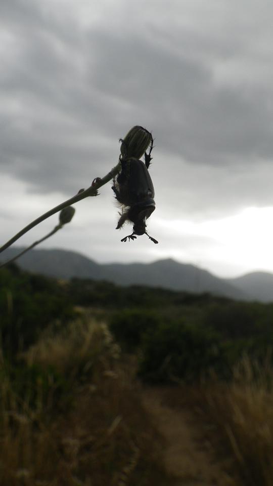 Oggi pomeriggio invece mi sono fatto un giretto (sempre nella penisola di Capo Carbonara, Villasimius) e ho trovato altri tre Pachypus. Allego qualche foto dell'insetto e dell'ambiente in cui vive.