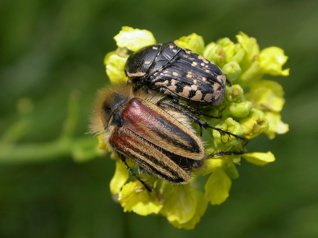 Uno dei vari glafiridi catturati, bestie magnifiche da vedere dal vivo: questa è una Eulasia (Vittateulasia) vittata, assieme alle onnipresenti Oxythyrea cinctella: